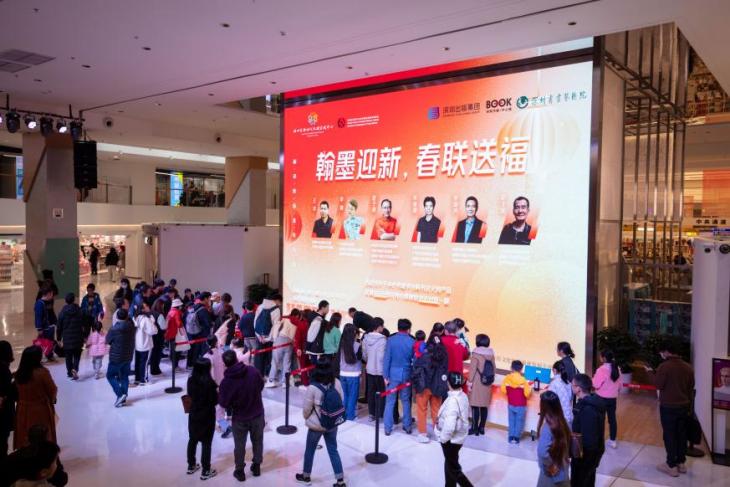 各大书城还开展了春联送福、非遗展演等特色文化活动。1月28日,深圳书城中心城举办“翰墨迎新 春联送福”——写对联 寻年味活动,邀请中国艺术促进会常务理事徐子屏、中国书法家协会会员朱燕霓等6位书法大家在北区大台阶挥毫泼墨,为市民写春联送祝福,受到广大市民喜爱。市民王女士表示,往年早已习惯采买量产的春联,很少有机会现场观摩书法家的创作,感受手写春联的魅力,很高兴在这次活动中能近距离观看书法大家挥笔泼墨的过程,将书法家手写的春联带回家。