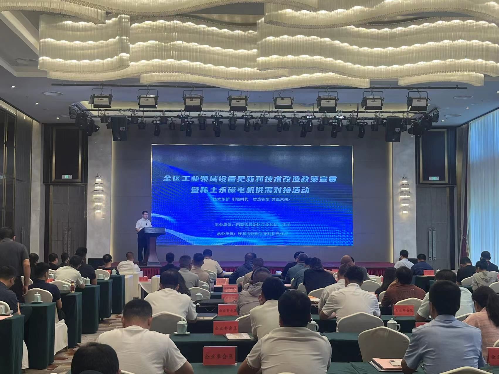 为深入落实党中央、国务院决策部署和自治区党委、政府工作要求,推动工业领域大规模设备更新和技术改造,加快推动高质量发展,2024年6月25日,内蒙古自治区工业和信息化厅开展全区工业领域设备更新和技术改造政策宣贯暨稀土永磁电机供需对接活动在呼和浩特市圆满举办。本次活动由内蒙古自治区工业和信息化厅主办、呼和浩特市工业和信息化局承办。