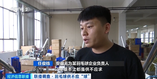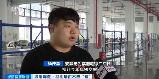 安徽无为某羽毛球企业负责人 任俊栋:今年相比往年销量增加很猛烈,订单供不应求,没有什么库存,(生产)出来货就被提前预订完了。