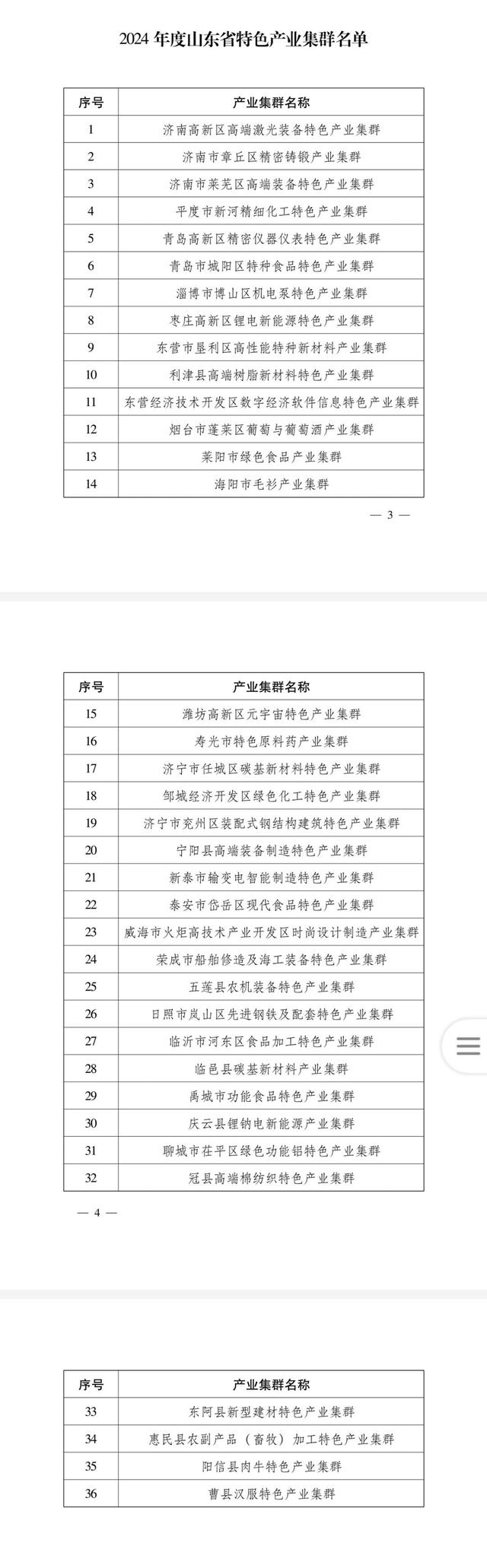 根据《促进中小企业特色产业集群发展暂行办法》(工信部企业〔2022〕119号)和《山东省特色产业集群管理办法》(鲁工信发〔2020〕5号),山东省工业和信息化厅近日组织开展了2024年度山东省特色产业集群培育认定工作。经集群自愿申报、各市推荐、专家评审和网上公示等程序,确定济南高新区高端激光装备特色产业集群等36家集群被认定为2024年度山东省特色产业集群。