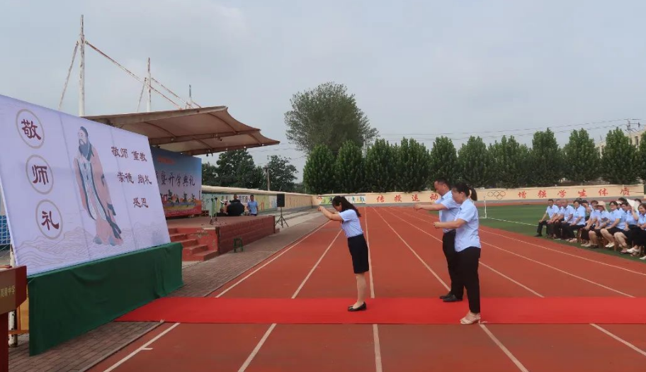 为加强优秀传统文化教育,近日,山东省济宁高新区第二高级中学在学校操场开展“敬师礼”活动。