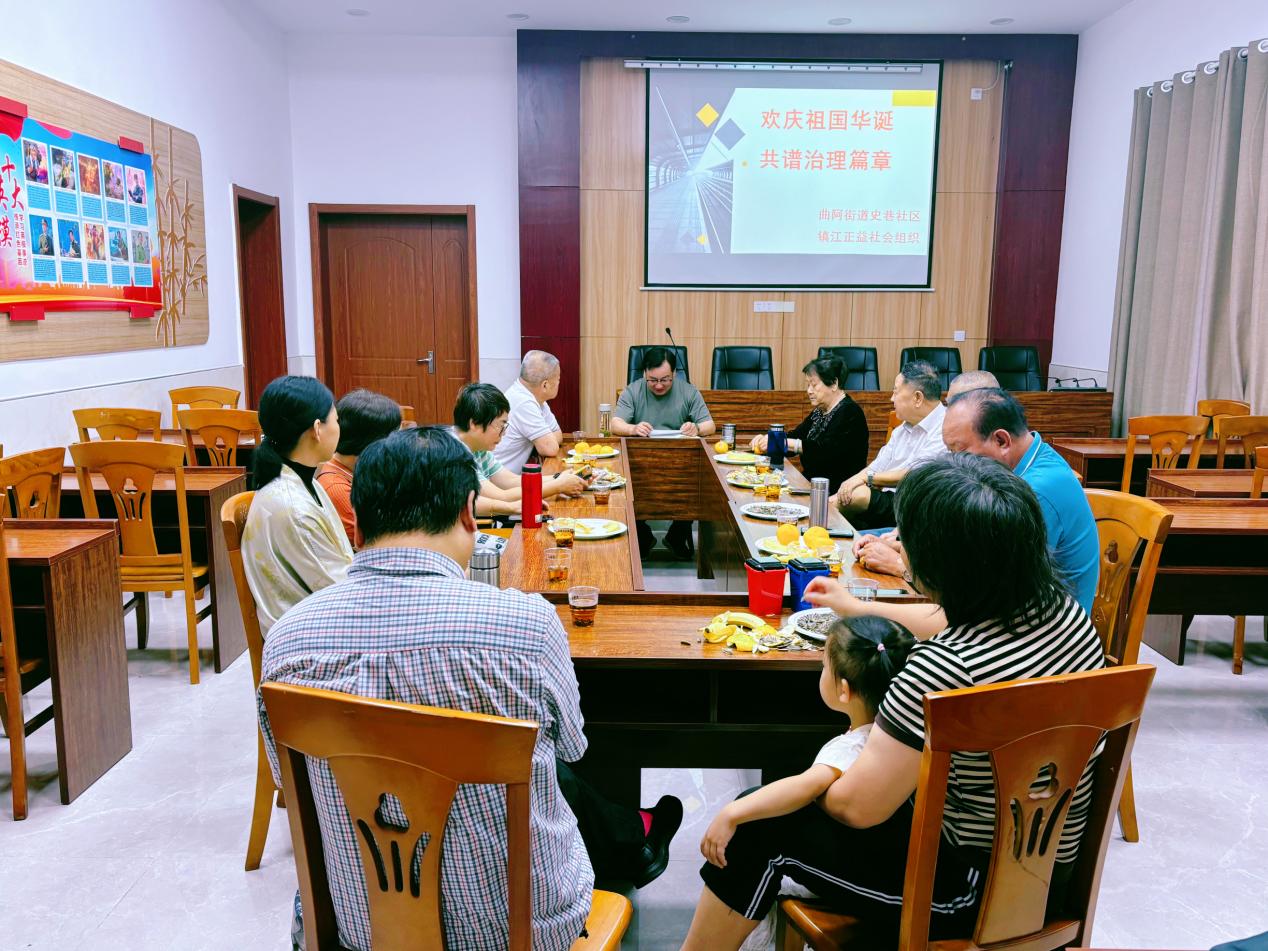 秋高气爽,硕果飘香。近期,江苏省镇江市丹阳曲阿街道史巷社区联合镇江市正益社会组织发展促进中心共同开展了“欢庆祖国华诞,共谱治理篇章”的迎国庆暨紫荆花园小区邻长茶话会活动。