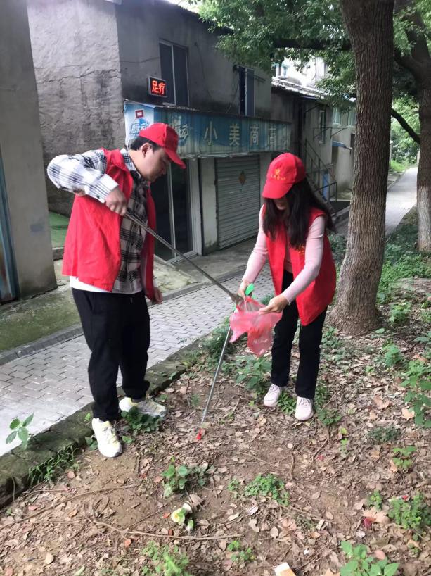 距离学校不远处,另一批党员志愿者迎着朝阳,弯着腰,在大街小巷中清扫垃圾,身体力行地为风车山居民营造整洁、卫生、干净的生活环境。