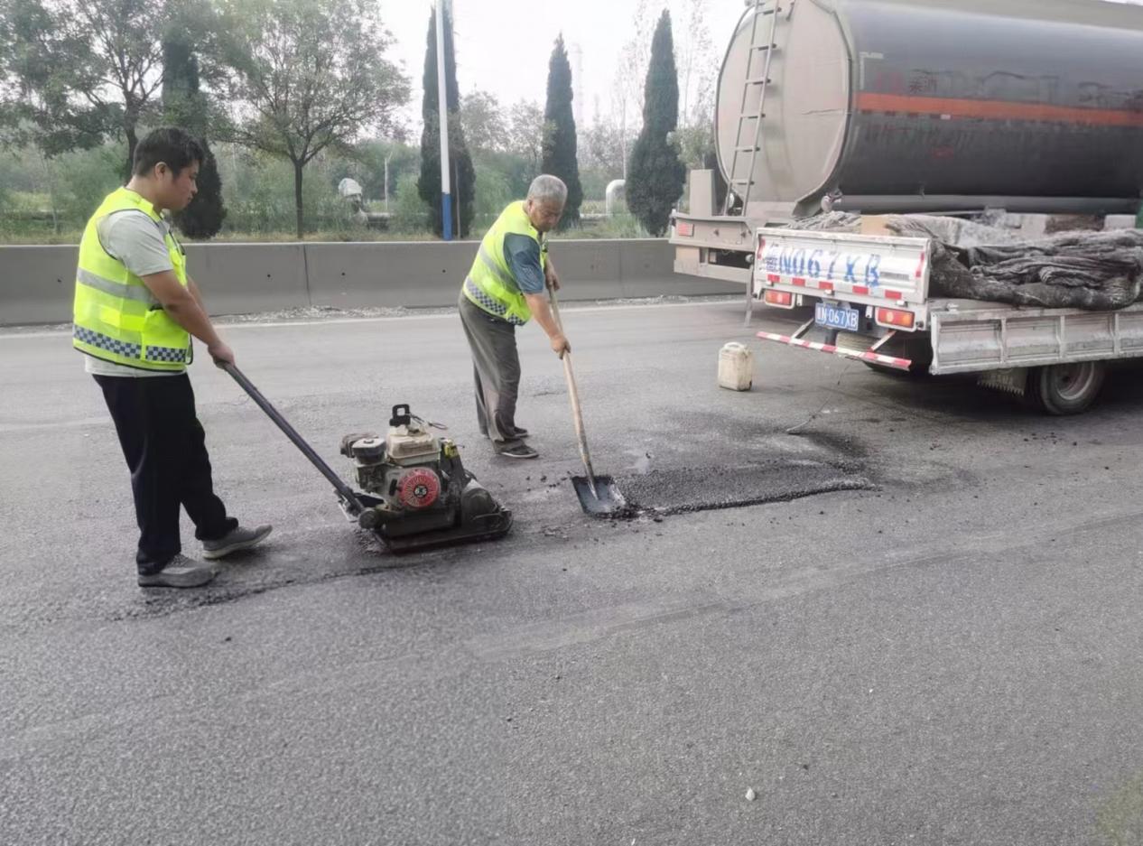 截至目前,共出动人员10余人,清理排水设施处杂物6处,修补坑槽40余平方米,清理、扶正交安设施10余处。