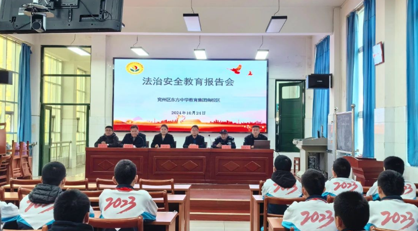 为了进一步强化学生行为规范,持续做好校园欺凌防治工作,保障学生的身心健康,打造平安、和谐的校园环境,10月24日上午,山东省济宁市兖州区东方中学南校区邀请学校法治副校长山东匡正律师事务所杨丽律师和西御桥派出所民警徐银海警官为学校师生带来了一场以“防范校园欺凌”为主题的法治安全教育报告会。