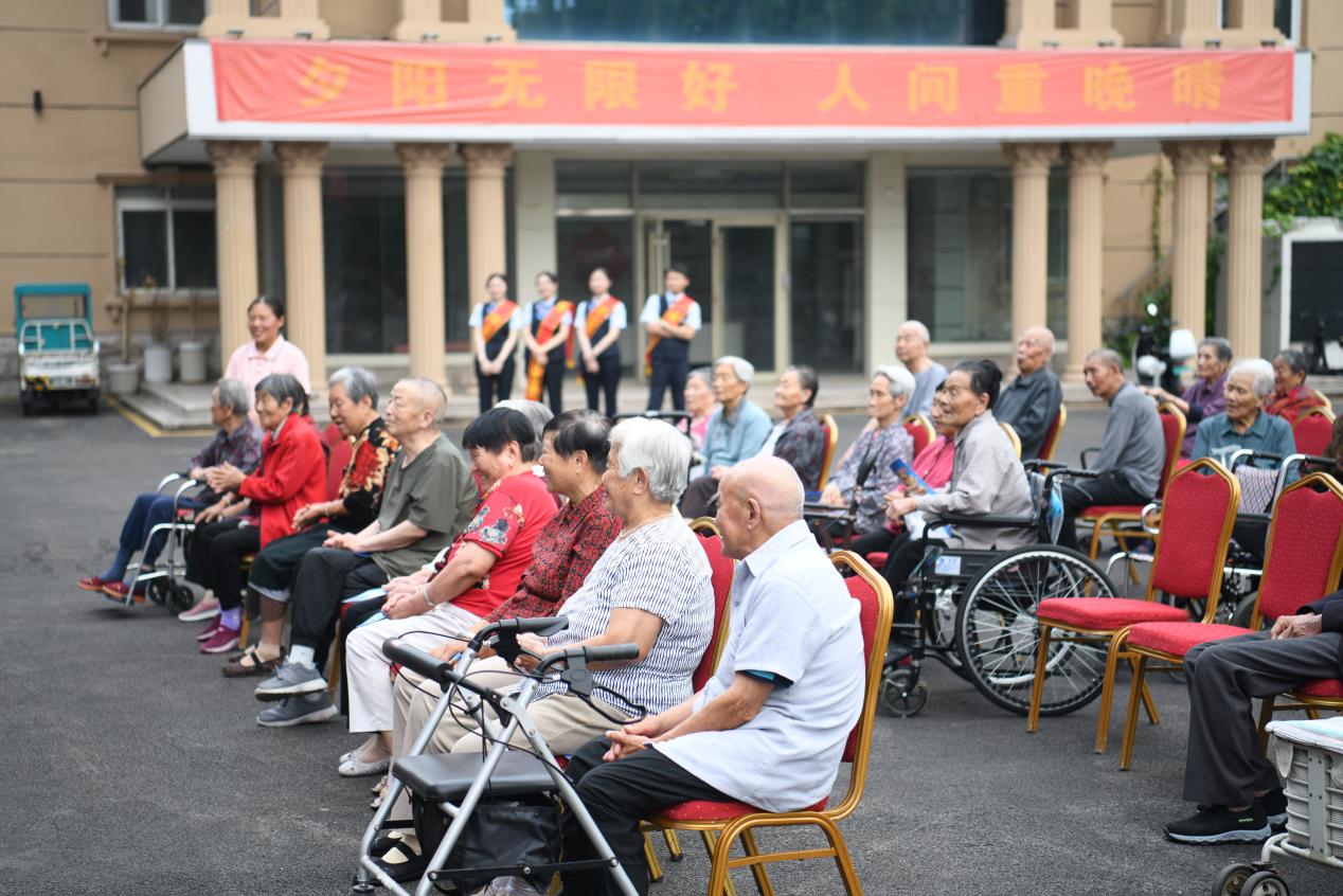 一阵“咚锵咚锵咚咚锵”的锣钹声传来,戏台的演出就要开始了。听到“集结号”的老人们,在分行营业部青年志愿者和护工的搀扶下汇聚而来。《老身家住南阳地》《朝阳沟》等传统经典曲目,在场的很多老人早就耳熟能详,但观看演出时依然热情不减,看到热闹处,便跟着节奏轻声唱和,用尽力气拍手较好。