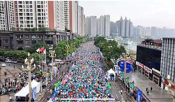 上万人参跑的过程中,选手们不仅挑战了自我,还领略了涪陵沿江的美丽景色,完美诠释了“人在画中跑”的运动场面。