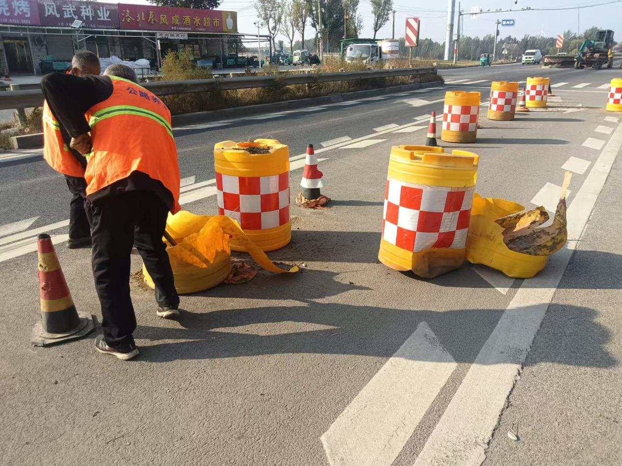 截至目前,清理公路垃圾10余立方米,集中更换防撞桶20余个。