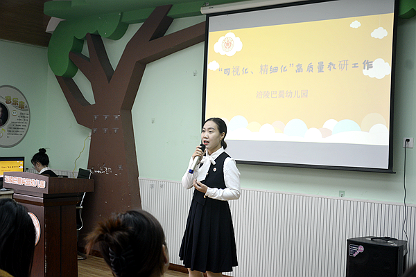 执行园长王亚琳则通过PPT的形式,从“可视化、精细化”高质量教研管理工作方面与大家进行了深入交流分享。