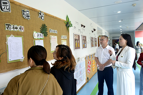 接着,在谢杰老师和陈林砾老师的引导下,老师们参观了幼儿园的教室、睡房、楼道、区角布置、主题墙和家园栏等。每一处精心设计的环境都体现着涪陵巴蜀幼儿园对幼儿教育的用心与专业。