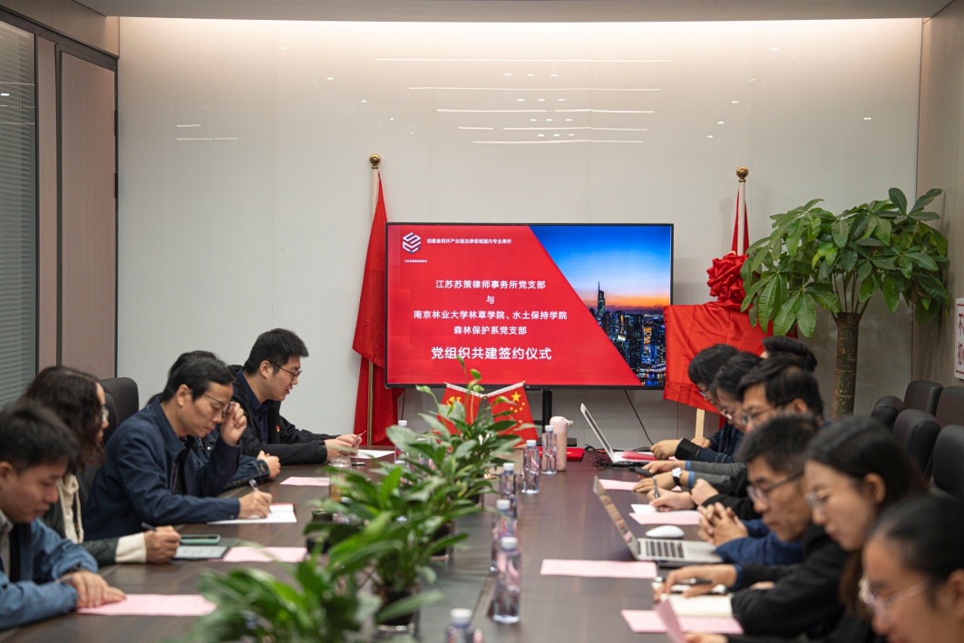为充分发挥党建引领作用,全面推进党建与业务工作有机融合,11月2日上午,南京林业大学林草学院、水土保持学院森林保护系党支部与江苏苏策律师事务所党支部联合开展支部共建活动。此次共建活动包括双方签约仪式、共听一次党课以及共同参加一场科普活动。
