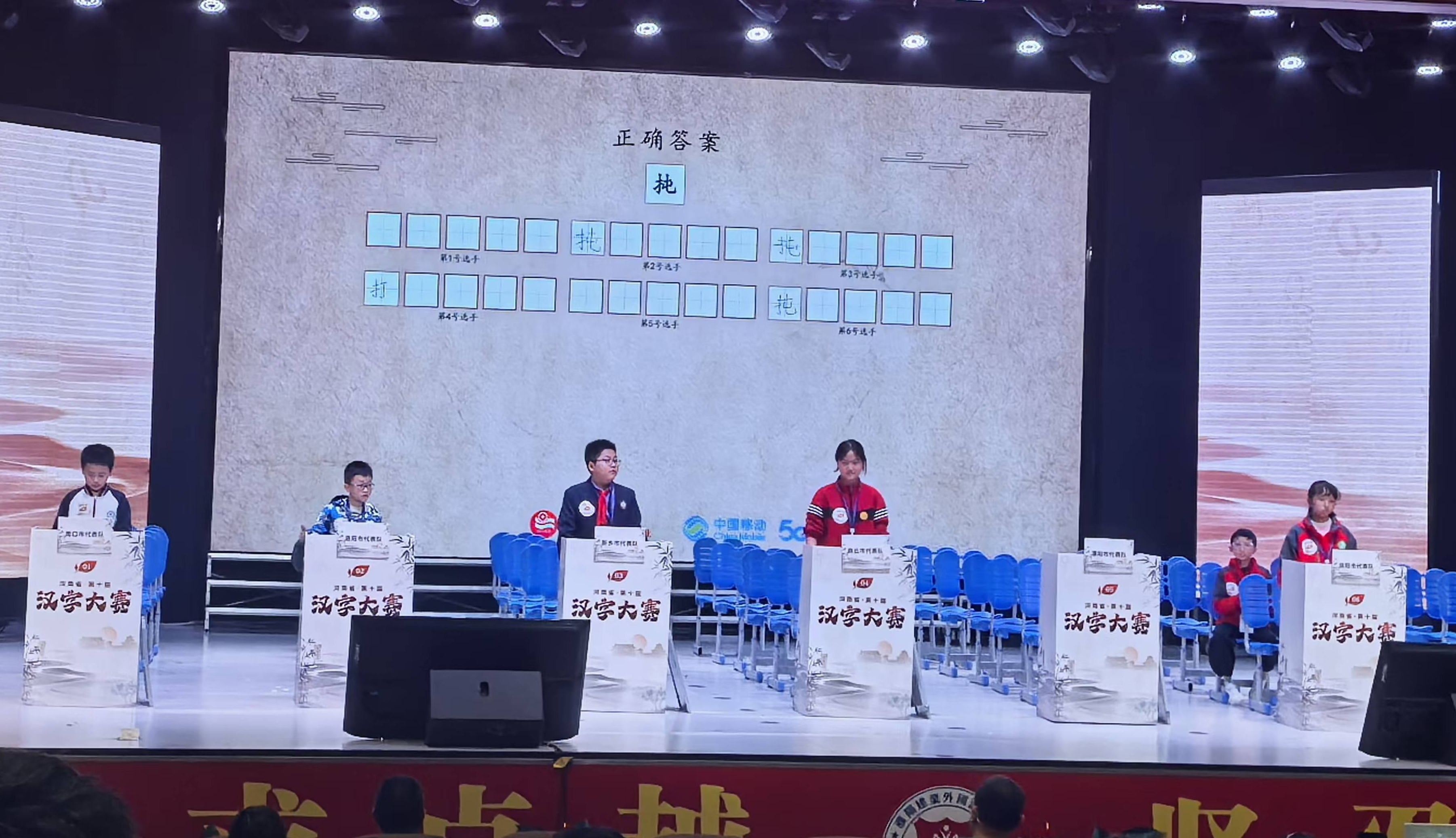 2024年11月1日至3日,第十届河南省汉字大赛在濮阳隆重举行,潢川县逸夫小学曹云淏、赵明浩两位同学荣获一等奖。在由六名选手组成的信阳市小学组团体赛中,曹云淏、江嘉祺两位同学奋力拼搏,不辱使命,为信阳市代表队摘得小学组团体冠军。