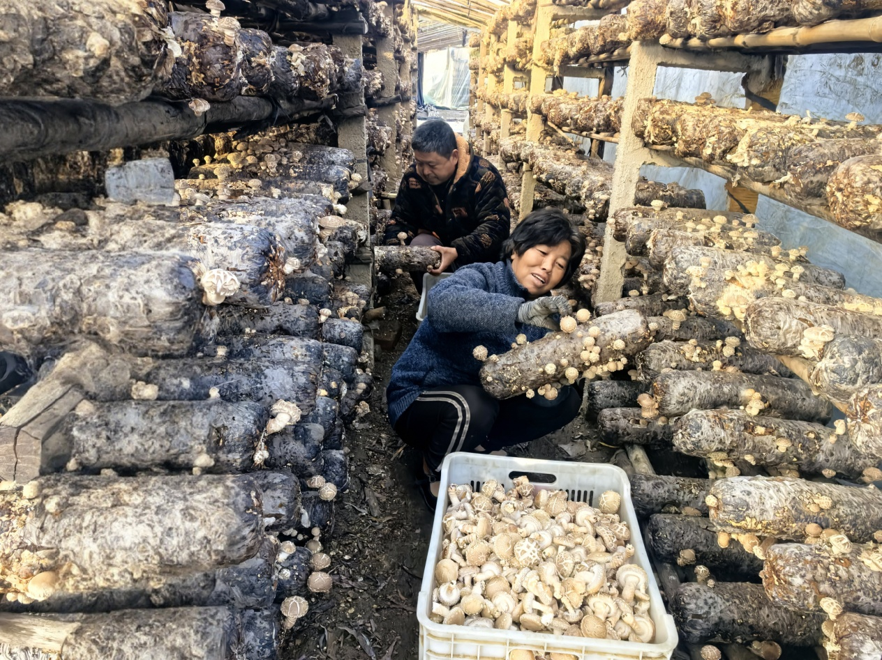 深秋时节,走进河南省南阳市西峡县石界河镇冬青树村,映入眼帘的是整齐排列着的一排排香菇大棚。在大棚内部,一排排菌棒整齐排列在菌架上,一朵朵个头不一、鲜嫩饱满的香菇从菌棒上“探”出头来。农户们穿梭在过道里,熟练地挑拣成熟的香菇,轻轻一摘,便采收进了筐子,随后将香菇运送到仓库进行分拣外销,确保香菇抢“鲜”上市。