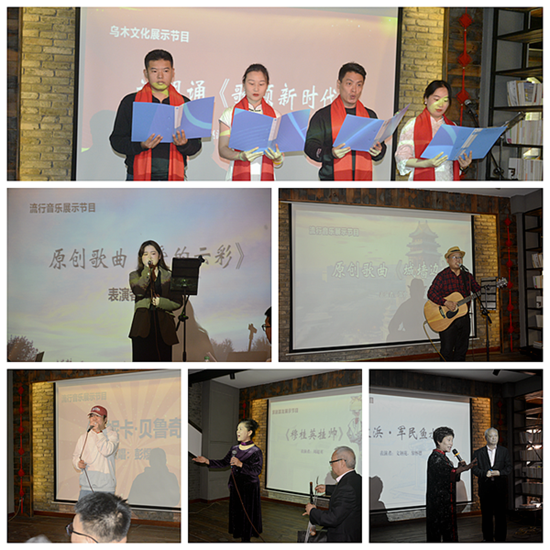 在文艺两新组织展示节目环节精彩纷呈。涪陵区乌木文化研究会赵津、刘金凤、彭桥峰、龚渝杰表演了诗朗诵《歌颂新时代》;涪陵区流行音乐协会谭世宇、张勇、彭煜程分别演唱了原创歌曲《爱的云彩》、《城墙边》、《莫妮卡·贝鲁奇》;涪陵区京剧票友协会周超英演唱了京剧《穆桂英挂帅》,文钢花、黎怀德演唱了京剧《沙家浜·军民鱼水情》。