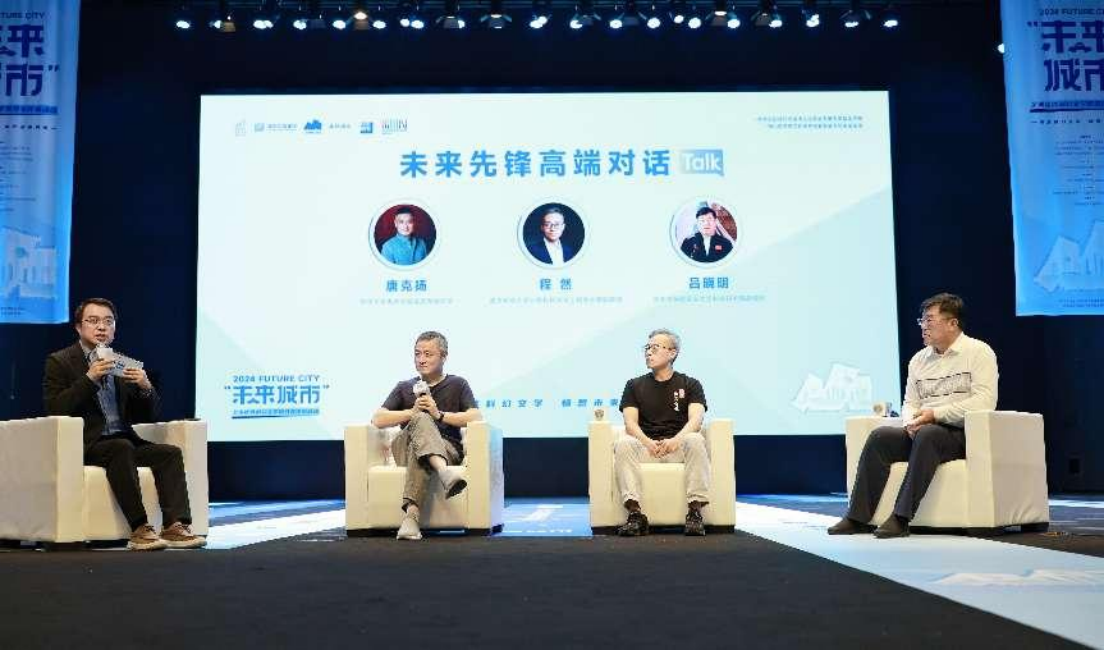 现场还举办了未来先锋高端对话,邀请清华大学未来实验室首席研究员唐克扬、南方科技大学教授程然与深圳市绿航星际太空科技研究院副院长吕晓明畅谈科学进展与未来想象。唐克扬提出,创新发现来自于差异,敢于面对差异,才会有未来;程然认为,创新的关键在于科学和人类想象力相互结合,未来更应关注技术与人的关系;吕晓明表示,随着航天技术的发展,人类畅想的空间越来越大,科幻可以作为先声引领想象。