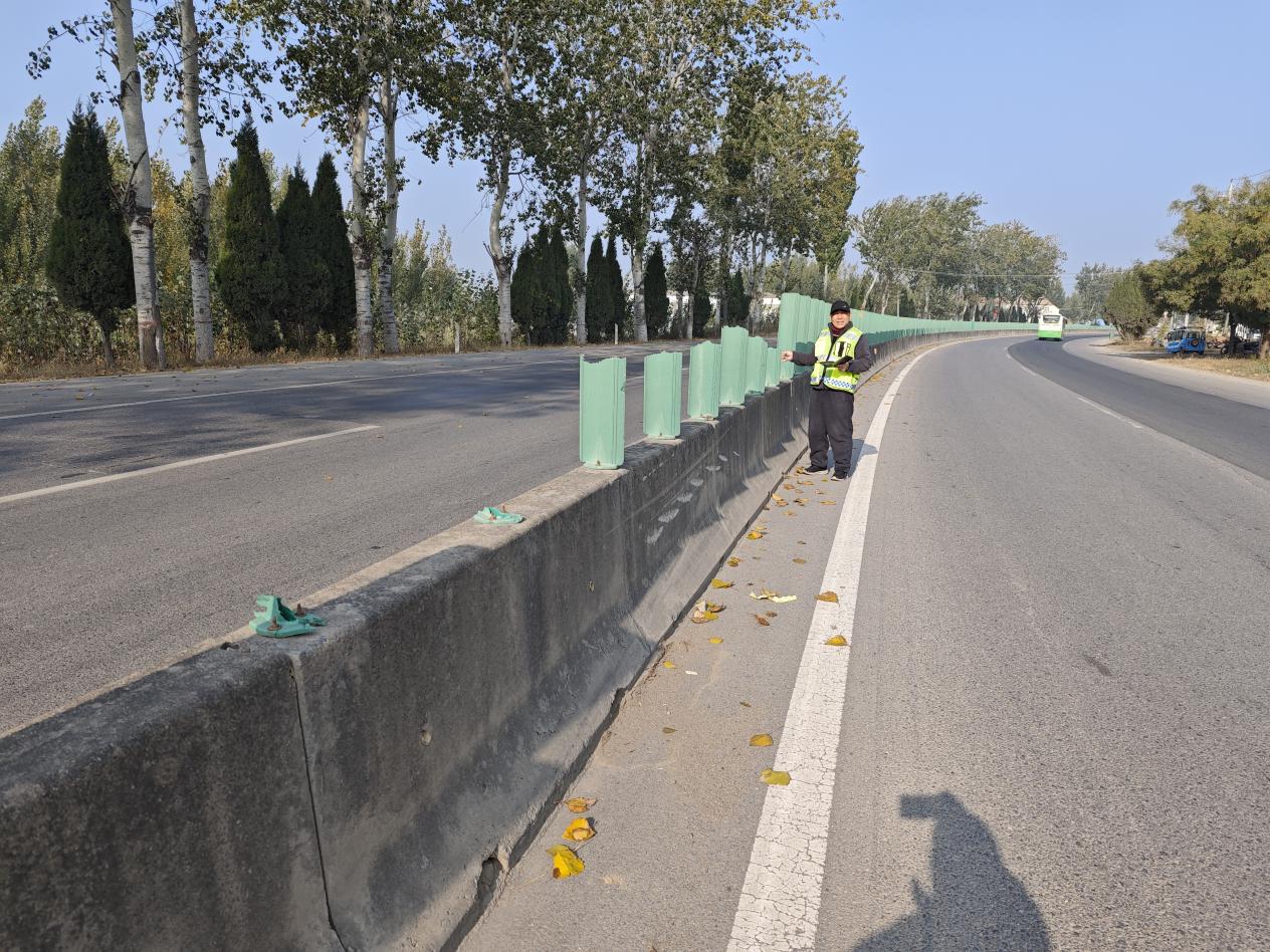 养护人员及时修复与更换损坏、缺失的交安设施,扶正歪斜的标志牌;补充完善在修工程的警示标志,定期检查更换危桥半封闭路段的防撞桶、安全锥,给沿线村民以警示作用;对沿线标志标牌、轮廓标、爆闪灯等脏污交安设施进行清洁,确保反光效果良好,保障过往车辆和行人能够及时准确地获取交通信息。