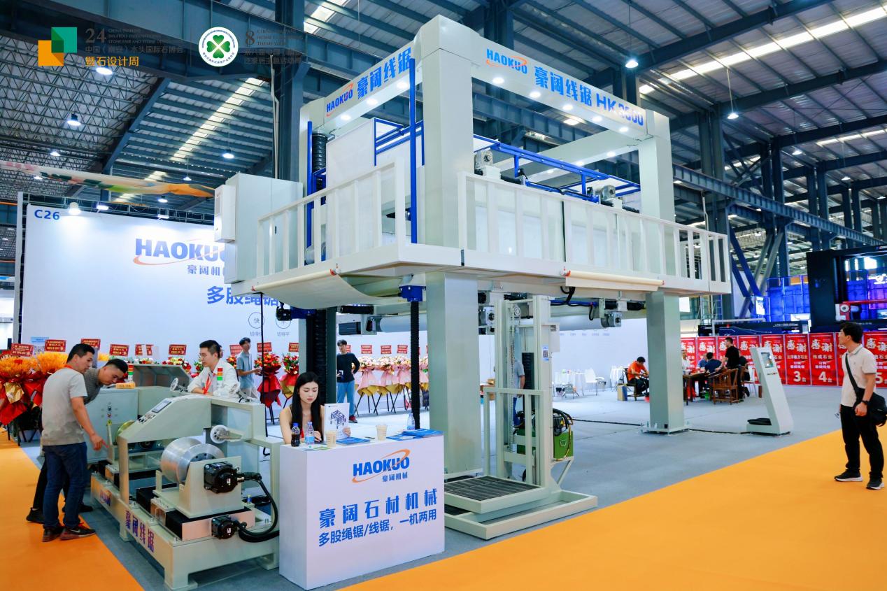 比如,豪阔线锯展示了最新的一机两用技术(线锯、绳锯切换),可同时切花岗岩、奢石、大理石,具有低噪音、高成材率、耗电少、粉尘少等特点。豪阔机械相关工作人员介绍,目前公司在订的线锯设备有40多台,供不应求。