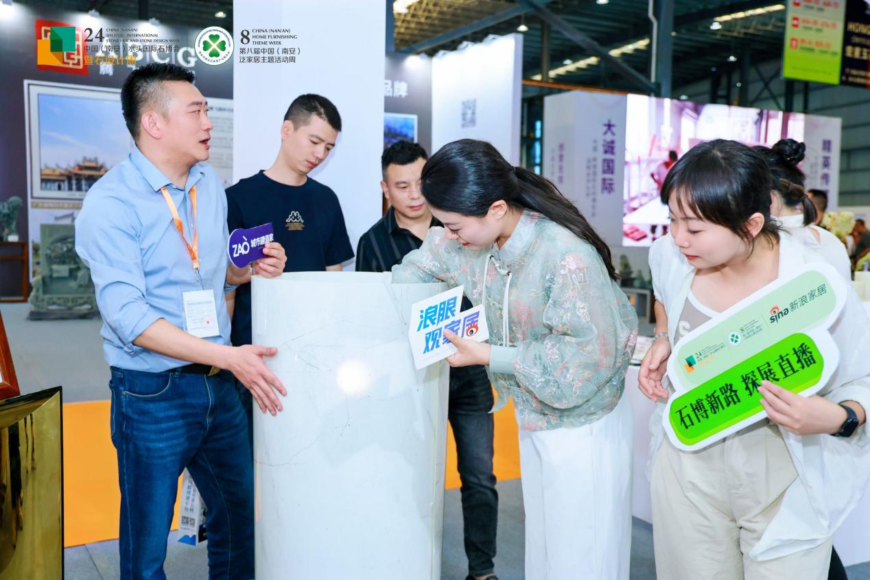 近年来,电商直播新业态在石材行业兴起,传统石材商纷纷转型生产石材家具、文创产品。水头石博会也敏锐地捕捉到这一趋势,本届展会设立1万平方米电商直播基地,创新导入“石电商节”,通过知名IP主播,500多名设计师与建材主播、1000万级别流量主播等网络达人深入企业与展位,引爆亿万级流量,为石材产业注入新活力。
