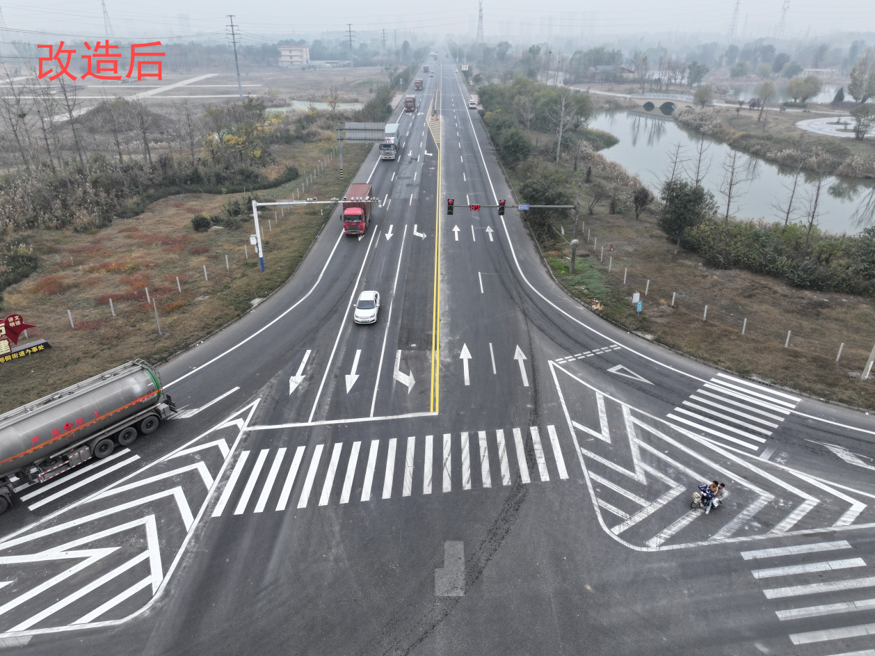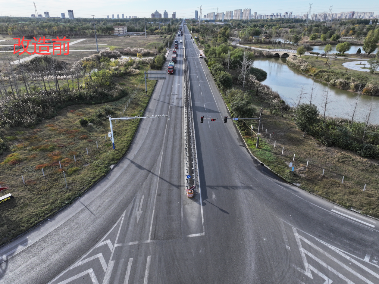 临邑县G104与S241交叉口西向东方向原为两车道通行,后经调查发现,经G513转S241济阳方向、G104陵城方向、G340商河方向和经东方大道进入G2京沪高速等车流量较大,该交叉口日均通行大、中、小型车辆约一万辆,堵车、压车剧烈时段长达2公里,给通行车辆和人员造成不便。为此,临邑公路分中心会同设计院出具图纸,实施了“拆除130米波形梁中央护栏、混凝土承台等原有设施,进行一周局部交通封控,铣刨、清运、摊铺、施划标线等施工建设”的“一拆二封三建”,将直左、直行两车道改造为左转、直行、直行三车道通行,极大提升了车辆通行效率。
