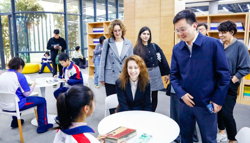 访问团一行到校后,首先对校园进行参观。在陈东副校长的陪同下,俄罗斯教育部专家们先后到学校体育馆、演艺中心、图书馆等场馆参观,并与正在进行阅读课程的同学亲切交流。