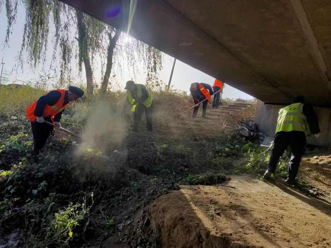 加强桥梁日常养护。及时疏通涵洞、泄水孔和排水沟,避免冬季排水不畅引起结冰;全面清除桥梁墩台、锥坡、护坡、桥底的垃圾。采取“人工+机械”方式清除桥下堆积物1.2吨,净化桥下空间,提升环境品质。