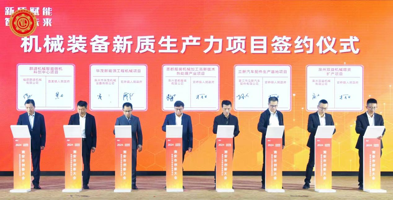 开幕式现场举行了机械装备新质生产力项目和产学研项目签约。群峰机械智能砖机科创中心、华茂新能源工程机械、圣都服装机械加工高新技术热处理产业、立新汽车配件生产基地、泉州双益机械增资扩产等5个机械装备新质生产力项目以及轻合金产业协同创新战略合作、科技成果转移转化山海协作、智能悬架系统技术框架战略合作、高端混凝土砌块生产线的数字化平台研发等4个山海协作创新及产学研合作项目的签约,拉开了南安新一轮创新浪潮。