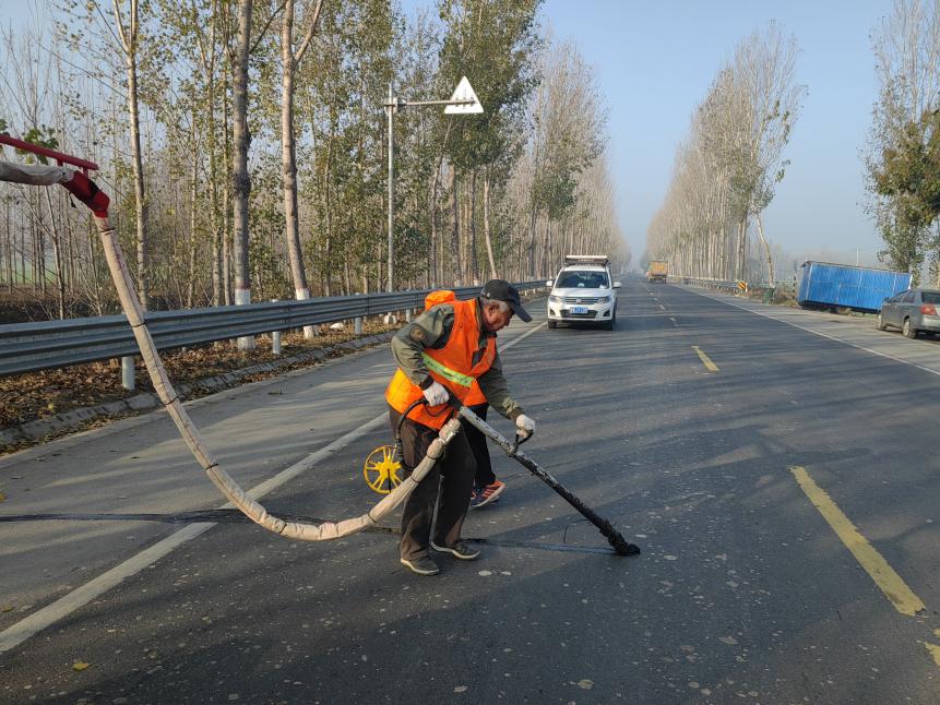 近日,为预防因冬季降雪导致路面冻涨融沉引发的各类路面病害,延长使用寿命,切实做好普通国省干线公路路面预防性养护工作。山东省德州市公路事业发展中心平原分中心集中力量对管养辖区G340线开展路面灌缝养护工作。