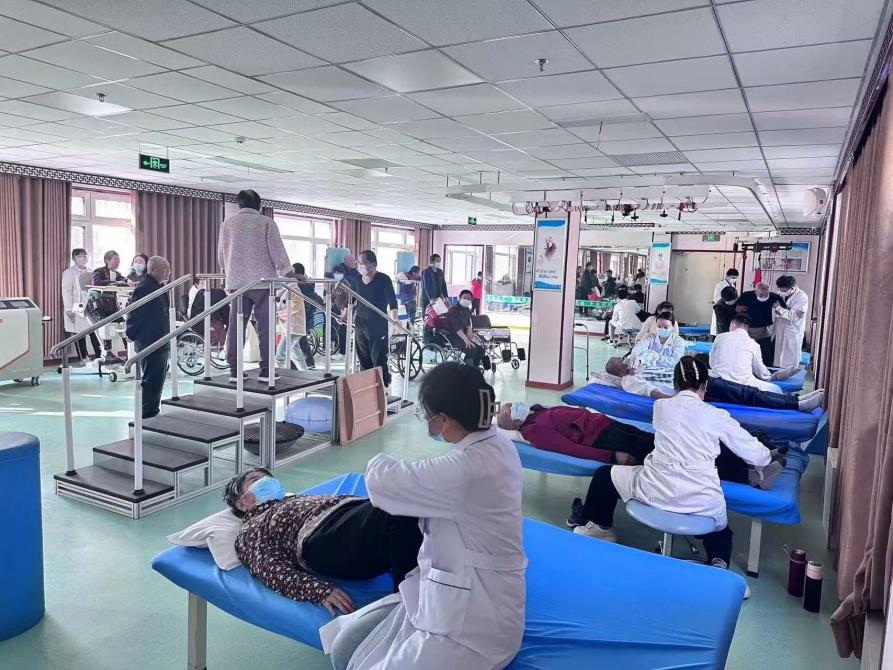 面对失能人群,建立了由48名康复治疗师、中医师、心理师、护士组成康复医学科,设置康复大厅、针灸室、推拿室、熏蒸室、蜡疗室、经颅磁室及语言吞咽运动障碍训练室等12个功能室。固定了5名康复治疗团队,专为失能、失智老人提供个性化康复治疗方案,帮助患者实现身心全面康复。针对老年人身体素质差、免疫力低下等问题,提供“一对一”保健、护理和饮食集中生活服务照护。定期开展保健养生服务、个性饮食服务、有氧健身服务,使老人充分享受寓养、寓康、寓乐的晚年生活。目前已累计收治康复住院病人3135人次,收治门诊康复病人5775人次。其中:半失能、失能失智老人占81%,显效率60%、有效率97%,使众多失能、失智老人重拾生活信心和能力,回归家庭和社会。