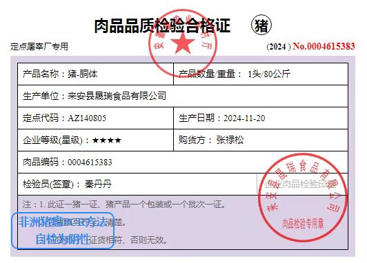 图为肉品品种检验合格证明