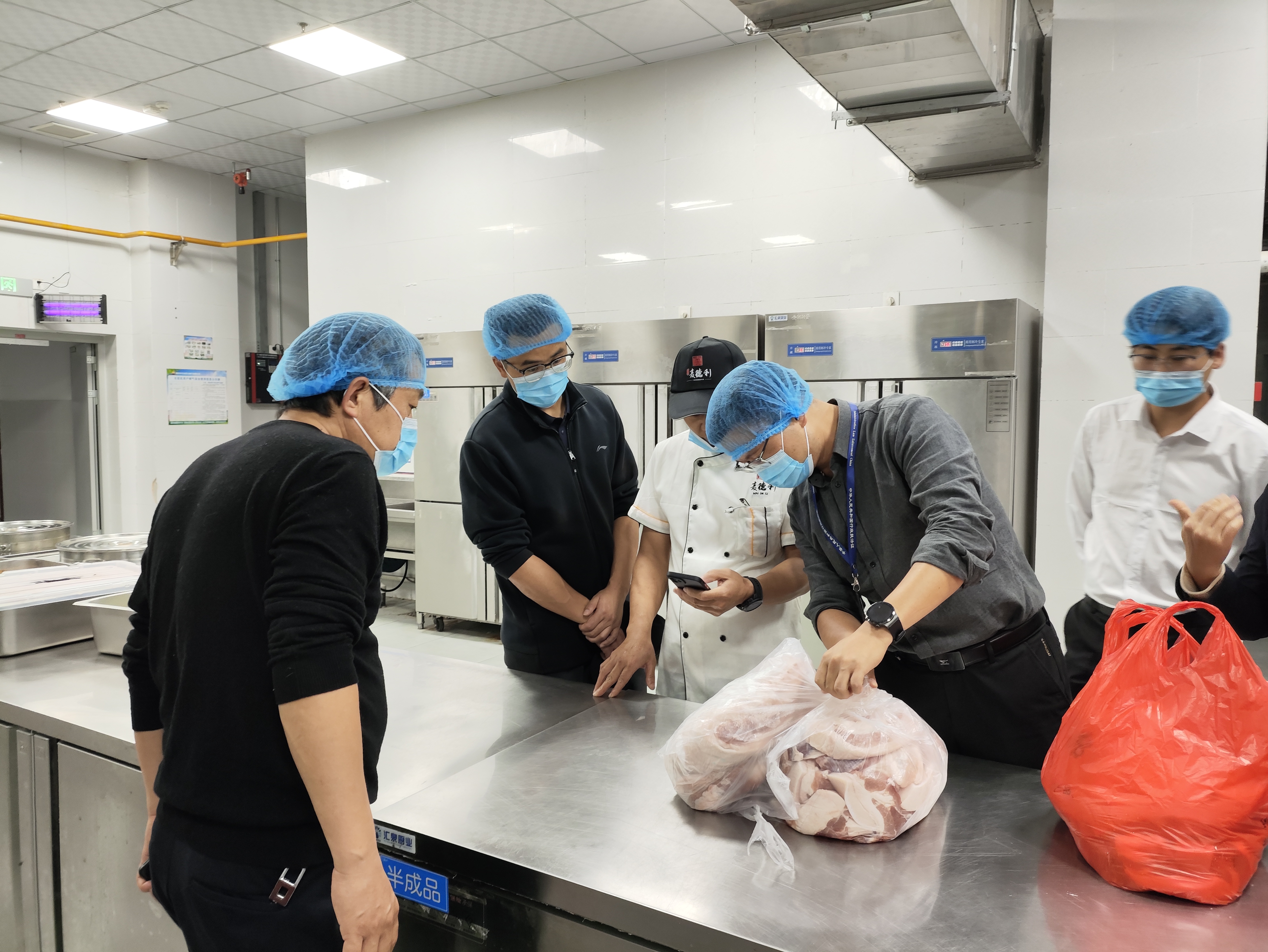 图为执法人员检查肉类产品保存情况