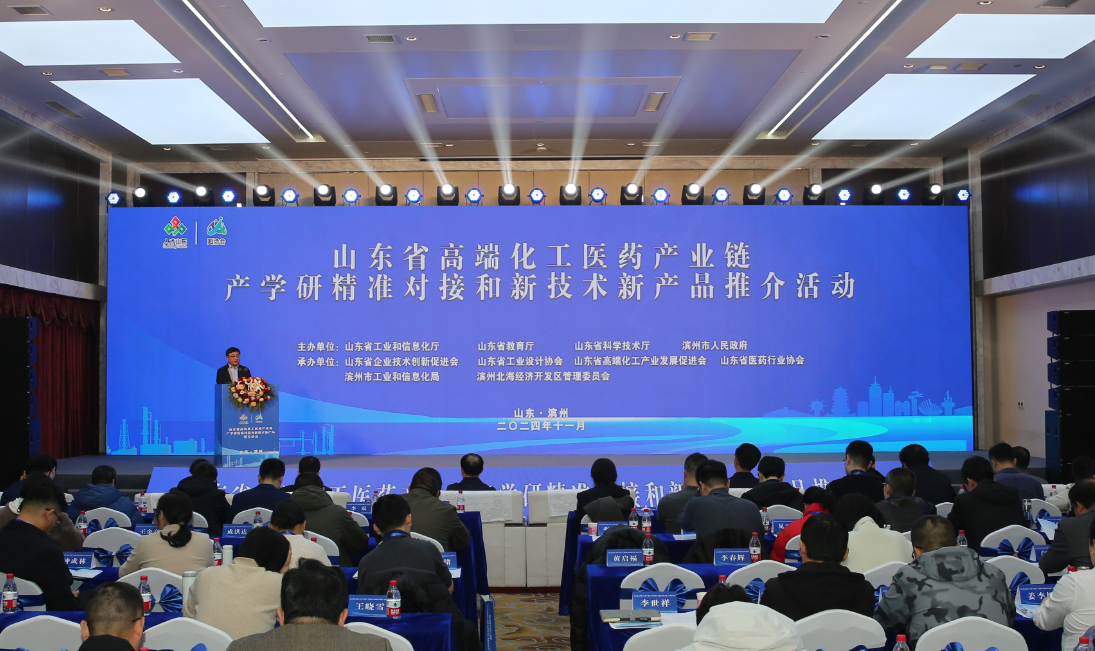 11月29日,由山东省工业和信息化厅、省教育厅、省科技厅、滨州市人民政府联合主办,省企业技术创新促进会、省工业设计协会、省高端化工产业发展促进会、省医药行业协会、滨州市工业和信息化局、北海经济开发区管委会承办的全省高端化工医药产业链产学研精准对接和新技术新产品推介活动在滨州成功举办。