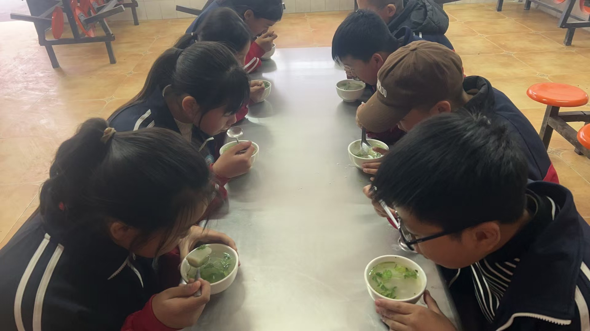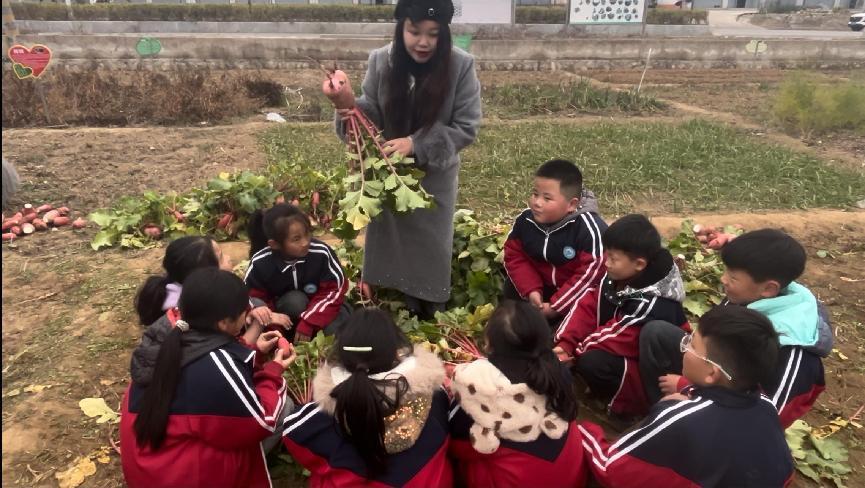 “时时膈气筑,只要煨芦菔。”室外劳动课上,老师们带领学生来到百草园,学生们一下“扑”进田里,手脚并用,争先恐后拔起一棵棵大萝卜。一二年级小同学发现扎根深的,约上三五人一起合作进行,口号响起,场面热烈又可爱,用力过猛或坐在地上,引来哈哈大笑。辅导员不失时机地现场讲解萝卜的功效和价值,鼓励孩子们适宜食用萝卜。“萝卜性寒,味辛甘,可消积滞、化痰清热、下气宽中、解毒;萝卜中的芥子油和粗纤维可加快胃肠蠕动,促进消化,有助于排便;萝卜可软化血管、稳定血压,在一定程度上可改善冠心病、动脉硬化等疾病;萝卜含有丰富的维生素C、维生素A、维生素B及一定数量的矿物质、微量元素,如钙、磷、铁等......”五年级同学把萝卜进行品种分类、根茎分离,挖窖存放,带上自己喜欢的萝卜送到食堂。有的班级把萝卜清洗干净,切成小块,装进盘里,发到各班级分享,享受新鲜萝卜的清脆;有的班级在食堂炊事员的指导下,做成了牛肉萝卜汤,当晚品尝。