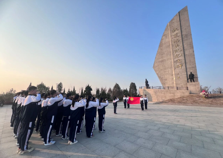 东方中学教育集团总校长彭华在铁道游击队纪念碑下寄语,他希望全体学生要怀着感恩之心向英雄们致敬,铭记他们的奉献与牺牲,以更加坚定的信念、更加饱满的热情,投身到实现中华民族伟大复兴的征程中,为祖国的繁荣富强而努力奋斗,让铁道游击队的精神永放光芒。(孙明阁 文/图)