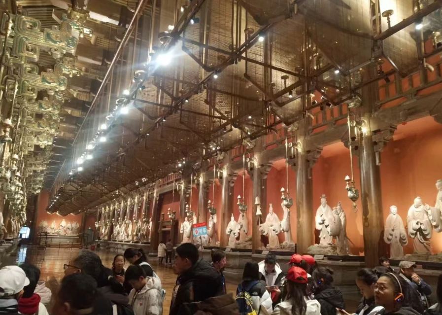 孔子博物馆以孔子为核心,系统展示了孔子的生平事迹、儒家文化的形成与发展,以及儒家思想对中国乃至全世界文化的深远影响。步入庄严肃穆的大学堂,游览七十二贤廊,学子们聆听导学讲解孔子及其弟子的故事,一边欣赏着荟萃了国内各类传统工艺的建筑、孕育古人智慧的苍穹顶、堪称国宝的泥塑和编钟,一边聆听孔子弟子尊师重德的故事,沉浸式感受儒家思想智慧,更在他们的心中埋下了探索中国传统文化的种子。在金碧辉煌的殿堂里,同学们一笔一画写论语,感受“半部论语治天下”,在一笔一划地誊写中,体会儒家经典的深刻思想。大型礼乐演出《金声玉振》以儒家文化为背景,通过诗、乐、舞等中国古典艺术形式与现代科技手段相结合的方式,展现了圣贤君子由凡入圣的过程。炫酷的灯光效果以及演员们的精彩表演,更是为师生们带来了一场惊艳的视听盛宴。