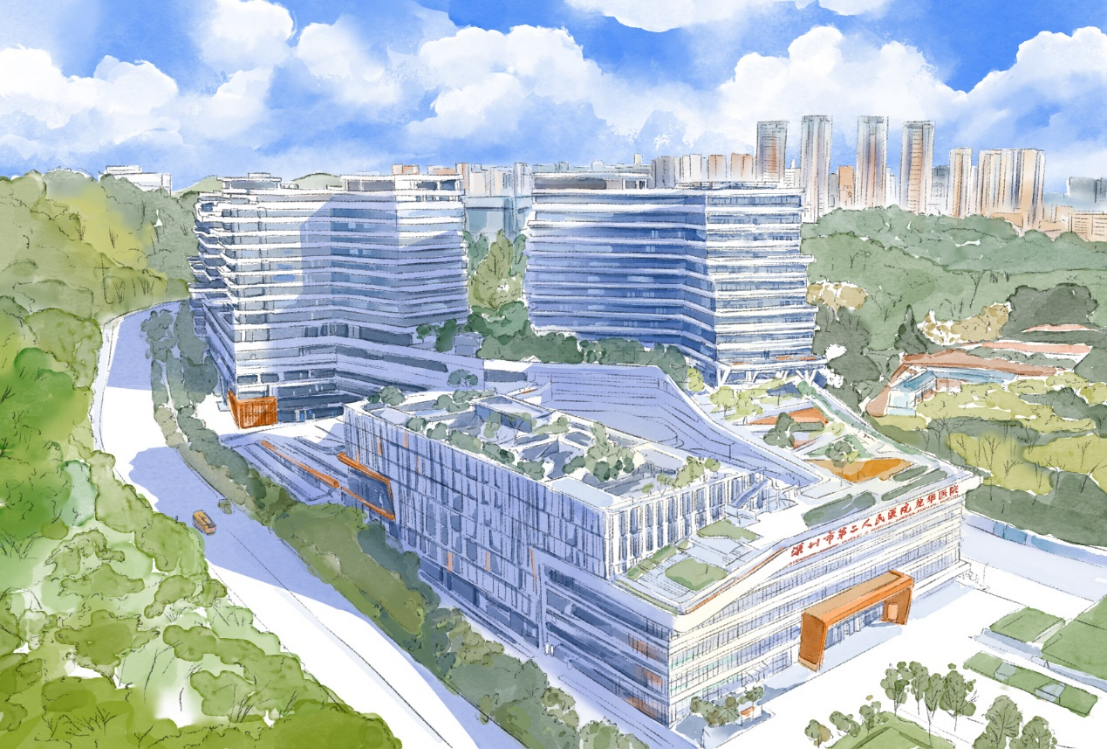 二院龙华医院坐落于龙华区鹭湖科技文化片区核心区,比邻被誉为“鹭湖四馆”的龙华区图书馆、群艺馆、大剧院和科技馆项目,周边配套设施完善,生态环境优美。