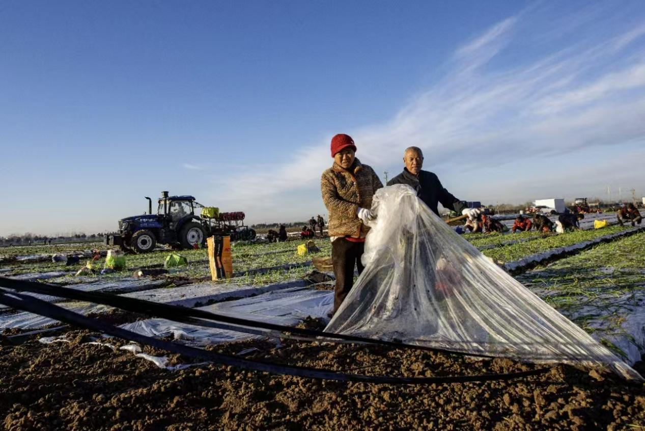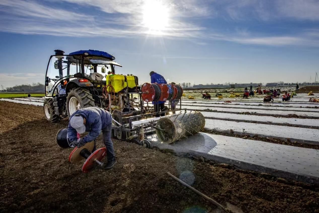 日前,城隍庙村乡村振兴产业园,在城隍庙村党支部书记姚荣贵的指挥下,160多名村民按照分工,摊铺塑料薄膜和滴灌水管,栽种洋葱苗,抽水浇灌,一派热火朝天的繁忙景象。