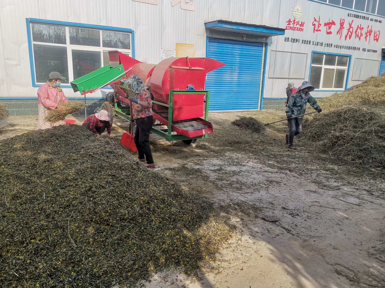 川店村的扶贫车间里,烘干机正轰鸣着将新鲜的野菊花烘干成型,工人们将其逐步打包装车。川店村村支部书记邱伟介绍:“野菊花采花和收割期劳动力需求是非常密集的,平均每天用工至少20人,高峰时期能达到50余人,人均工资80元每天,带动了周边很多群众尤其是脱贫群众增收致富。”