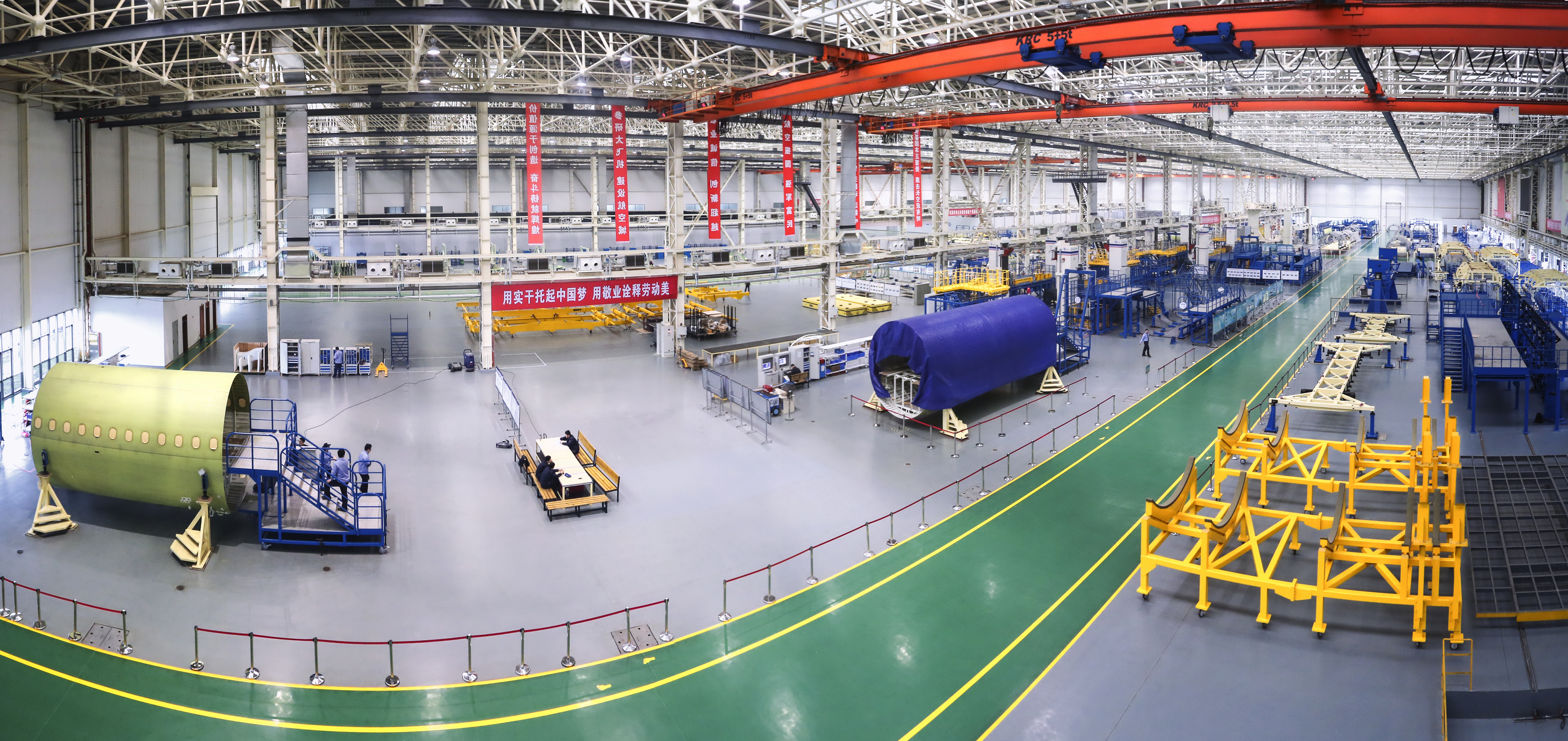 图为国产大飞机C919大部段生产线一幕。