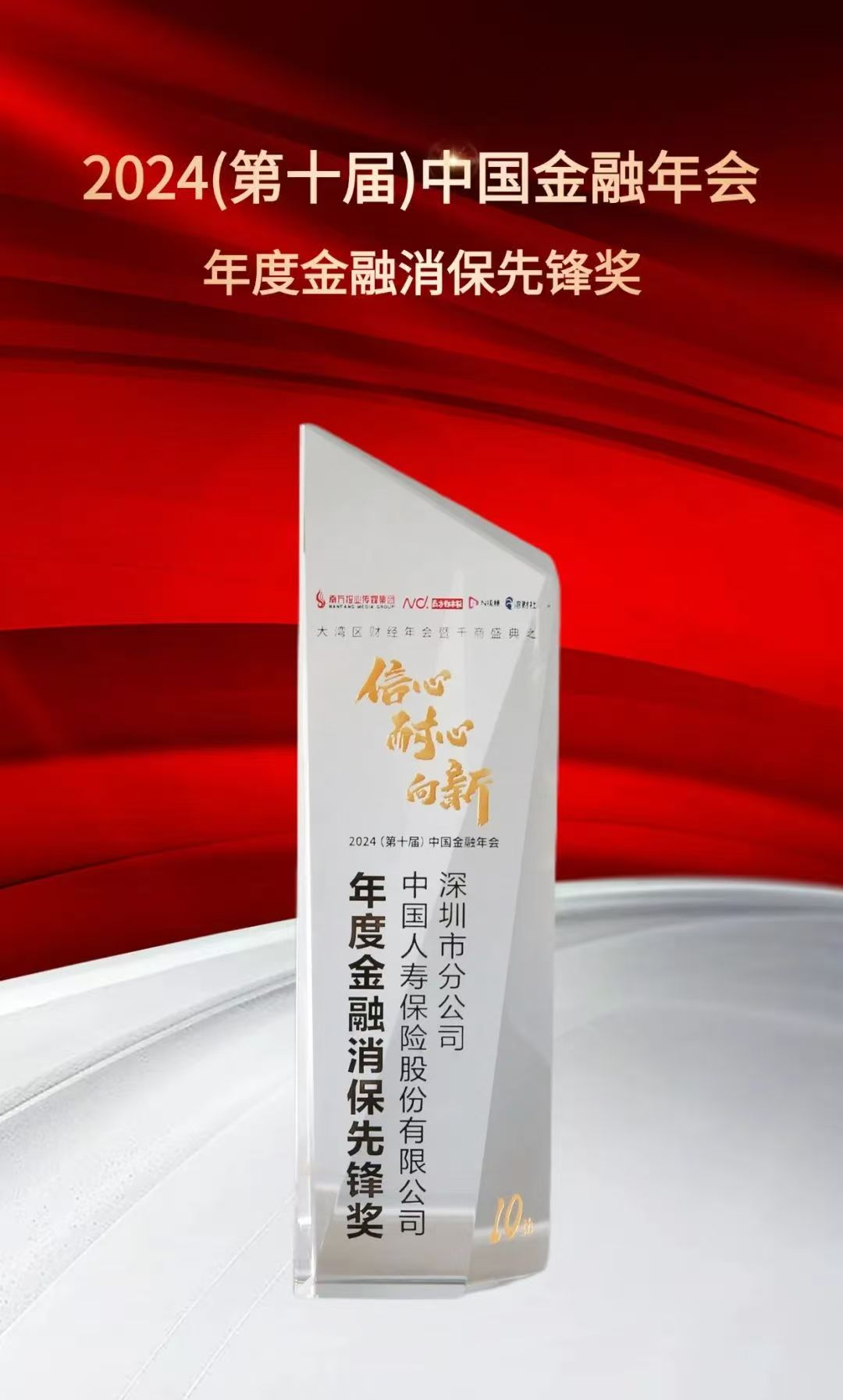 日前,在“2024(第十届)中国金融年会”中,深圳国寿荣获“金融消保先锋奖”;在第十八届金博会深圳市居民金融素养提升工程成果展中,荣获“2024年度金融教育宣传优秀机构”,充分展现了在金融消费者权益保护方面的卓越表现和领先地位。深圳国寿不仅在荣誉上有所斩获,更在实际行动上不断推进消保工作的深入开展,切实当好金融消费者权益的守护者。