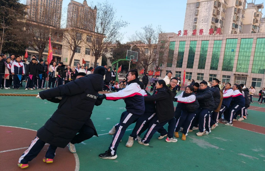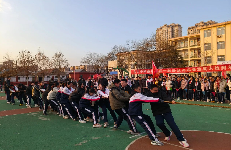 2024年12月27日,阳光洒满了山东省济宁市兖州区东方中学南校区的操场,为了振奋各班士气,鼓舞各班拼搏劲头,让每一个学生燃起战胜对手的决心,以积极的斗志和坚定的决心迎接即将到来的期末考试,初一级部举行了一场激烈的拔河比赛。