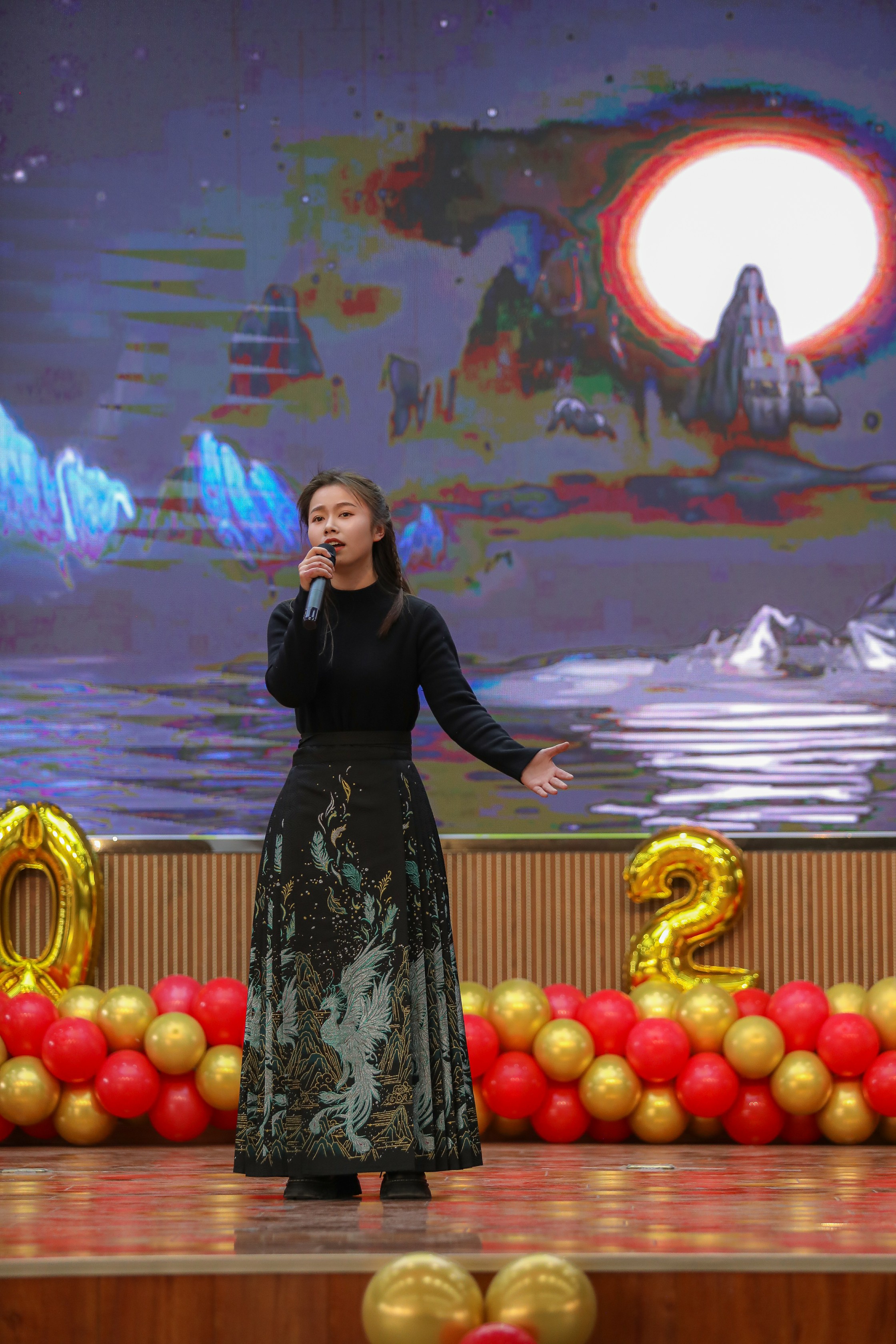 下半场迎新年文艺汇演在热烈氛围中开启,以“新岁序开,共赴新程”为主题,带来一场视听盛宴。诗朗诵、独唱、歌伴舞、集体舞、小合唱等节目轮番上演,教职工们各展才艺,展现出积极向上的精神风貌,台下掌声与欢呼声不断。