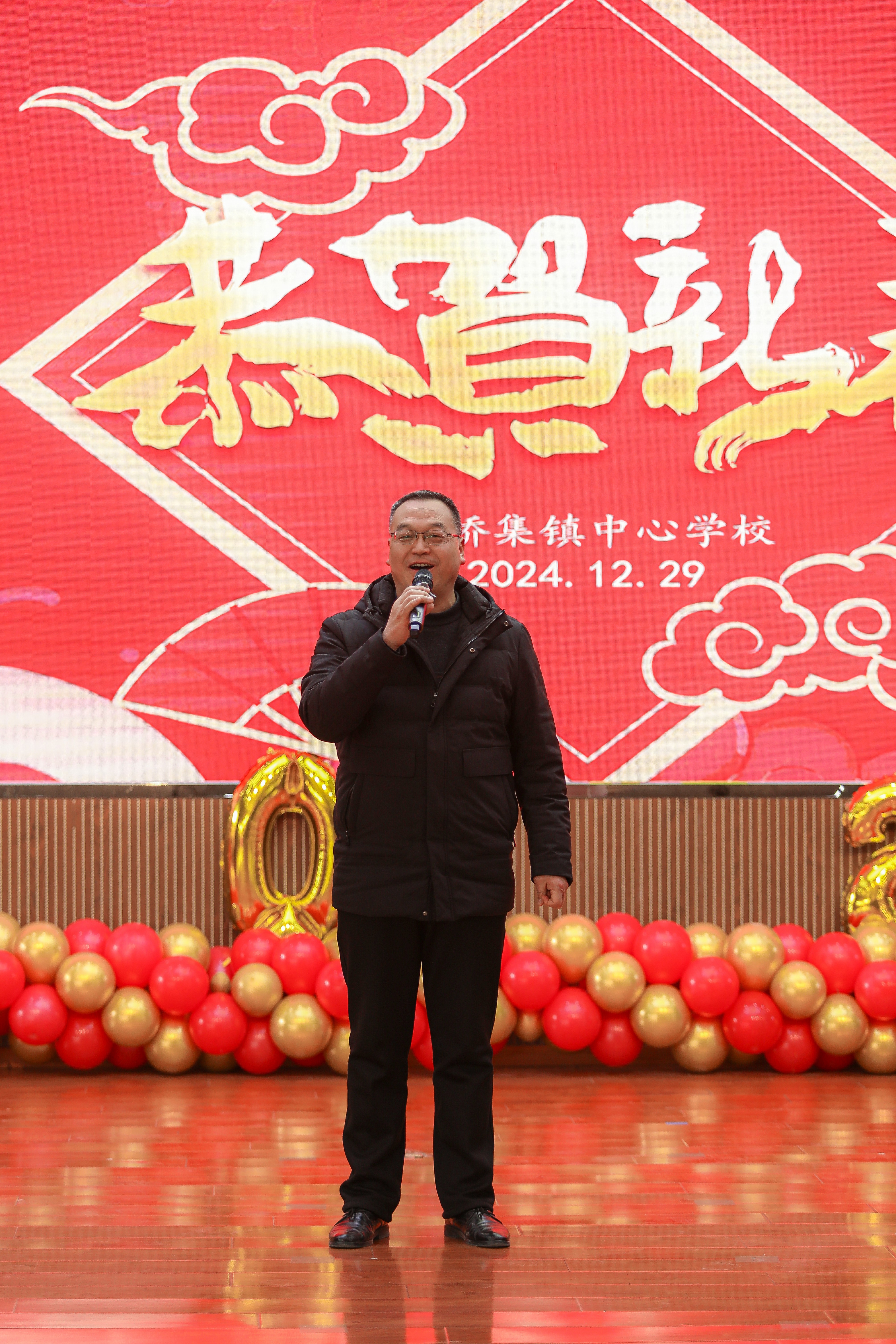 活动伊始,双桥集镇中心学校党总支书记张沂发表新年致辞。他回顾过去一年中心校工作成果,阐述未来规划蓝图,向教职工一年来的辛勤付出致谢,并送上新年祝福。