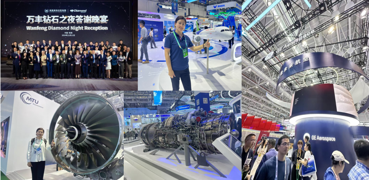 在珠海航展期间,魏因加特安公司受主办方邀请参与了万丰钻石之夜,并拜访了MTU和Safan发动机、GE航空等重要客户。2024年珠海航展的最终参展企业1022个。参展商来自47个国家和地区,其中海外展商数量增长104%,展商总数增长38%。吸引了60多万游客。展示了航展的广泛影响和吸引力。交易情况:在为期6天的展期中,2024年珠海航展共成交2856亿元,成交飞机1195架,相当于1195架F35战斗机的价值。