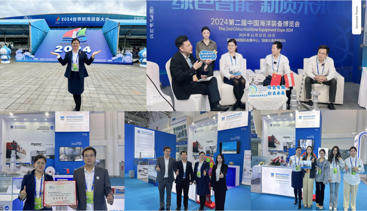 11月18日,为期四天的2024中国(福州)国际海洋装备博览会(CMEE2024)在福州顺利闭幕。本届展会以“绿色智能新质未来”为主题,展览面积达到10万平方米,吸引了752家全球优质展商齐聚一堂,3.5万专业观众到场:其中专业采购商约7500人,包括600多位境外采购商。22万人次观展热潮:吸引了社会公众的广泛关注,彰显海洋产业的巨大潜力。480亿元交易额:展会期间成功促成大量合作,展现了海洋装备市场的强大活力。魏因加特纳积极参与本次展会,团队受到主办方的官方直播采访,同时荣膺“优秀参展商”。