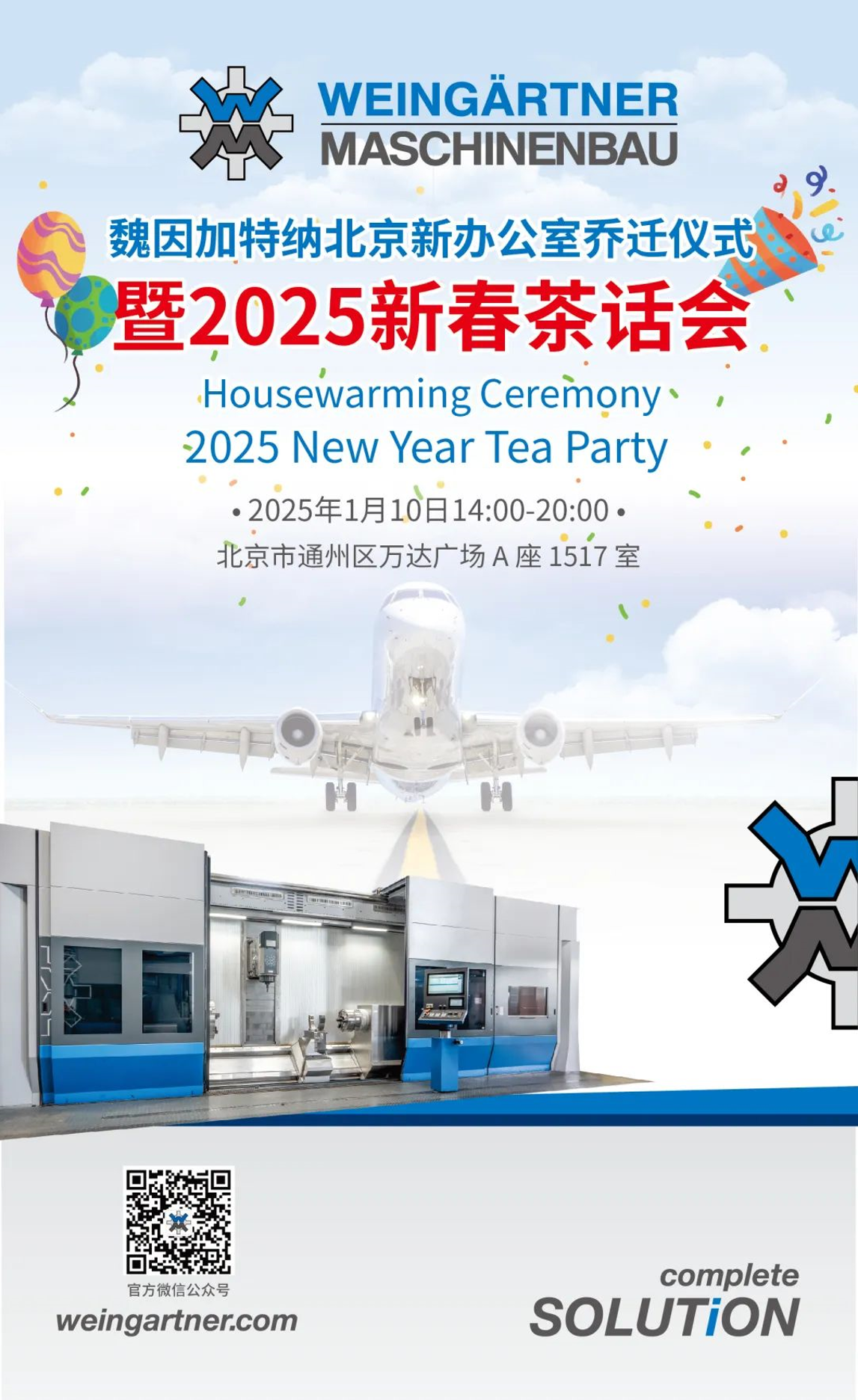 2025新年伊始,1月10日我们即将举办“魏因嘉特纳北京新办公室乔迁仪式暨2025新春茶话会”,我们诚挚邀请各位客户、合作伙伴以及行业朋友莅临!期待在这里与您展开更多交流与合作,携手开创更美好的未来!祝大家元旦快乐,也期待您的到来!
