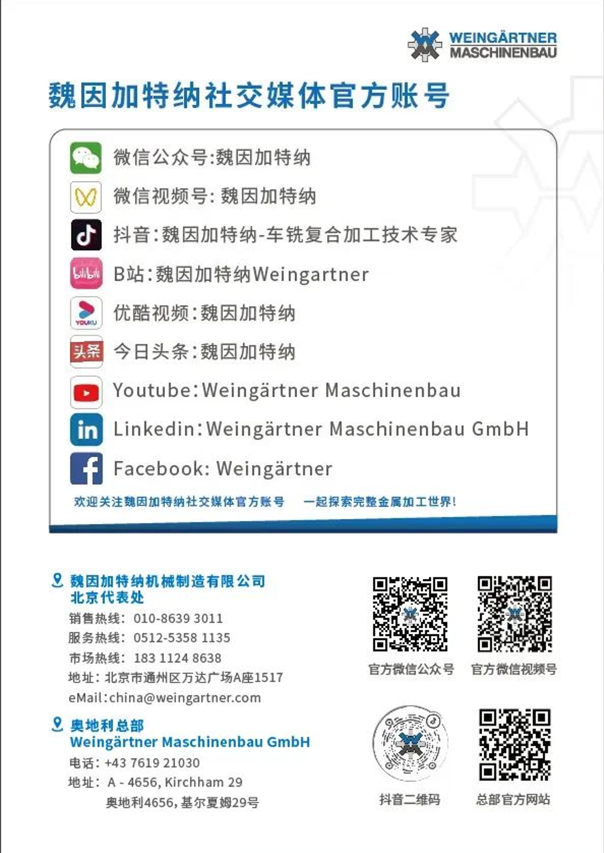 为了更好地服务中国市场,扩大规模,魏因加特纳正式在北京市副中心通州区万达广场设立新办公室!作为亚洲市场的重要布局,这一全新办公室不仅承载着我们对未来发展的期许,更是与客户和合作伙伴深化合作的重要平台。