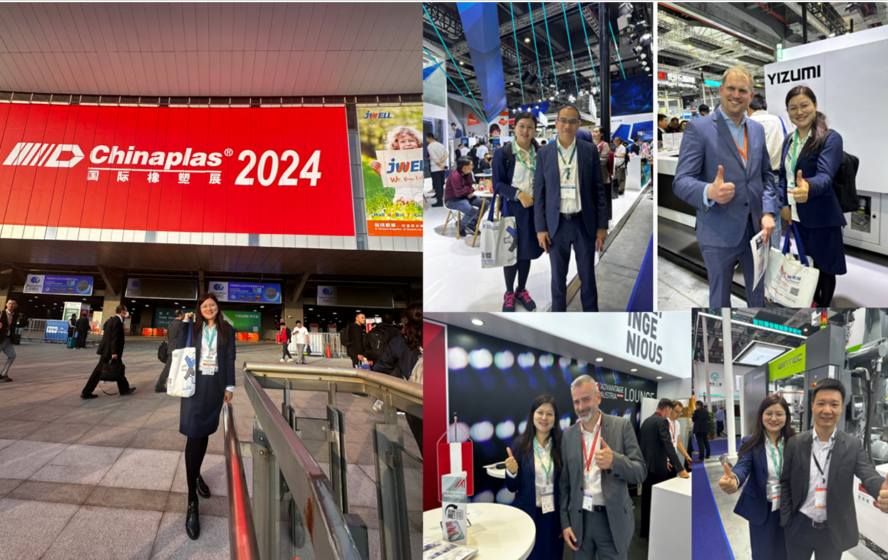 此次Chinplas展会共有4495家参展商和321879名参观者,是亚洲塑料行业规模最大的展会。我们积极拜访了25家重要客户,像宁波海天、华业、伊之密、恩格尔、克劳斯玛菲、舟山岛螺杆加工企业、浙江金星螺杆等所有重要行业客户都参加了此次展会。