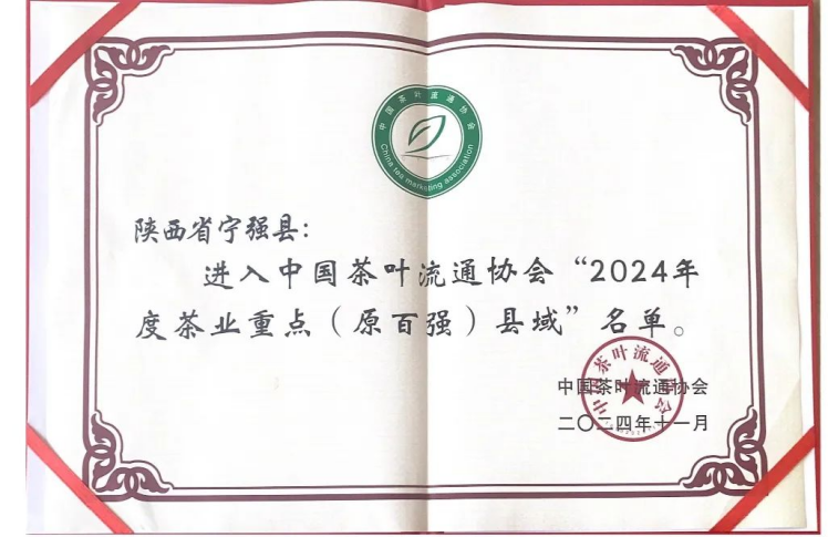 宁强县再次荣获“2024年度茶业重点(原百强)县域”荣誉称号。