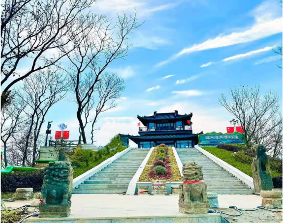 建山村调集了颇具历史文化特色的石刻300余件,放置在登山步道两旁,它不仅能点缀道路,还宣传了丹阳齐梁文化和石刻文化。并特邀南大教授张学锋,以及南京历史博物馆胡阿祥教授亲临指导。台阶旁边写着“相约黄连太子峰,迈入星光梦幻道”。顶上层昭明阁里面摆放了宣传丹阳齐梁文化的各种展示模版介绍,每一处都诉说着那段传奇的齐梁两代开国皇帝的历史,让人心生敬仰。