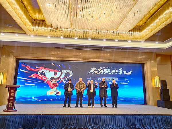 区餐饮商协会会长刘明杰宣读“引领先锋奖”和“行业贡献奖”名单,中共涪陵区委常委、宣传部部长吴辉为获奖者颁奖。